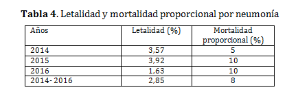La letalidad por neumonía en el trienio mostró la cifra más baja en el 2016, en