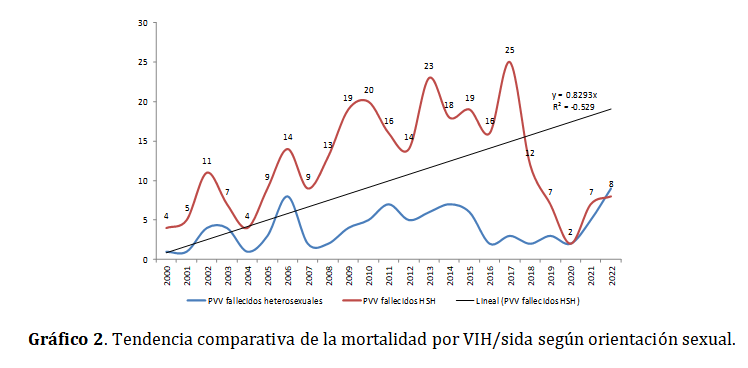 Resultados: La heterosexualidad se erigió con un patrón de variabilidad diferente a lo esperado, observándose incremento porcentual significativo entre los años extremos de la serie, a expensa de las mujeres en edades jóvenes e intermedias de la vida, solteras, sin vínculo laboral, con preeminencia de practicar sexo transaccional. El debut clínico del sida y la precariedad inmunológica constituyó un problema de salud. La variación porcentual de los fallecidos y la tendencia comparativa fue superior en los HSH, con un patrón de variabilidad y monto de muerte superior en los heterosexuales.