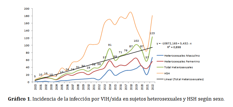 Methods: An observational, descriptive and traverse study, was carried out with longitudinal strategy, to characterize the people with new infection for HIV/AIDS, of both sexes, with heterosexual orientation, with a comparative focus in the mens that have sex with other mens, according to the different selected variables, during the decade of 2013 to 2022. For the prosecution of the results the average and the standard deviation were used. The information was presented by means of statistical, graphics and mathematical methods.