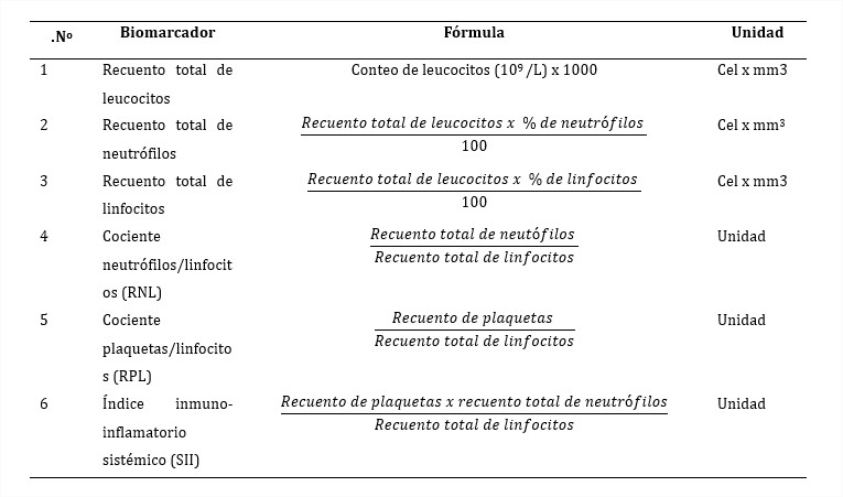 Diferentes grupos de trabajo han intentado desentrañar el papel de variables inmuno-inflamatorias con ventajas de tipo económico y de accesibilidad para países en desarrollo. Tal es el caso del hemograma y los recuentos de neutrófilos, linfocitos y plaquetas,15, 16, 17, 18,19
